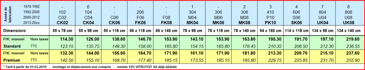 Prix 2019 des stores énergie manuels VELUX FHC (pose non comprise)