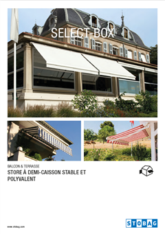 Le STOBAG SELECT-BOX S8250 est un store en toile à bras articulés polyvalent, adapté aux surfaces de tailles moyennes.