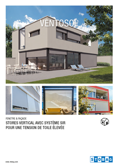 Le modèle STOBAG VENTOSOL VM720/3 est un store vertical avant et latéral utilisé comme extension des solutions existantes de terrasses. Il se caractérise par son design cubique et ses rails d'extrémité escamotables. Offrant une possibilité d'ombrage de grandes dimensions, le modèle est également disponible avec un moteur de détection d'obstacles en option.