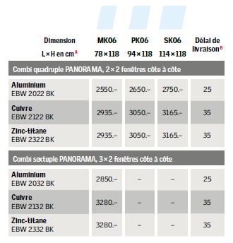 • 4 fenêtres de toit superposées (2+2 MK06 78x118cm, PK06 94x118cm, SK06 114x118cm) ou