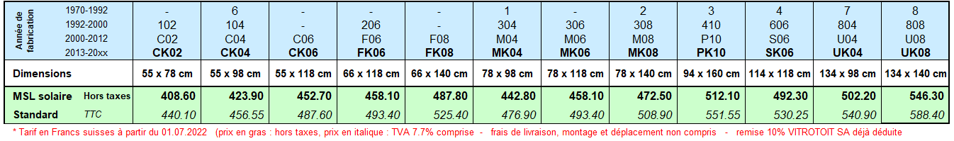 Prix 2022 des marquisettes anti-chaleur solaires VELUX MSL (pose non comprise)