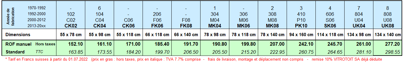 TARIF VITROTOIT SA - STORES COMBO ROF VELUX - PRIX 2022