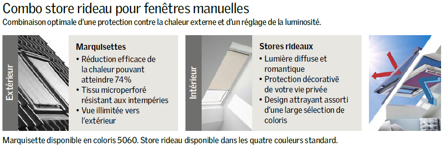 Le prix du combo VELUX est inférieur de 10% au prix des deux stores qui le composent commandés séparément.