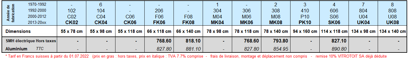 Prix 2022 des volets roulants électriques VELUX SMH (pose non comprise)